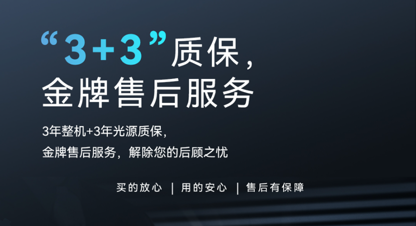 优异的品质和优质的售后服务是九洲酷游·晨星系列投影机未来发展的有力保障,也是对每一位九洲酷游·晨星用户的承诺。我们推出3年质保和“五星级”产品服务,为所有客户提供3年整机质保外加3年光源质保服务,真正做到让客户买的放心,用的安心。