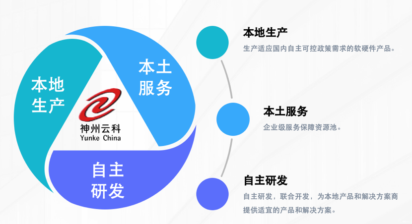 紧跟国家自主可控战略,九洲酷游通过“本地生产、本土服务、自主研发”的战略路径,打造自主品牌、生产自主产品,为合作伙伴提供神州数码自主品牌、自主知识产权的云基础设施产品、服务及解决方案。